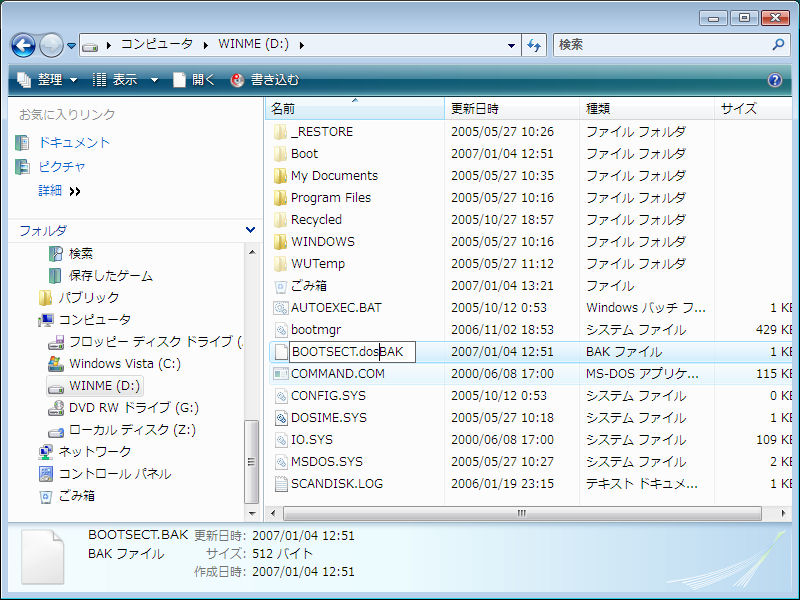 Windows 9xをインストールしていたパーティションからはWindows 9xの関連ファイルを削除することができますが、bootフォルダとBootmgrファイルだけは削除してはいけません。