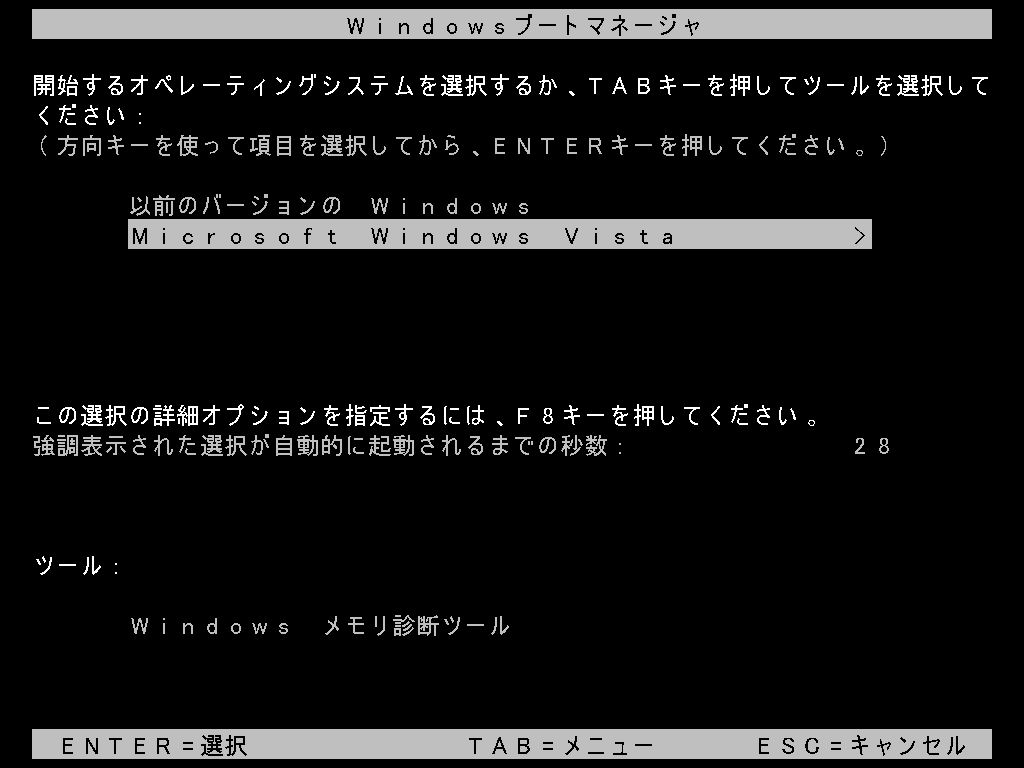 これでVista/2008/7が起動できるようになります。