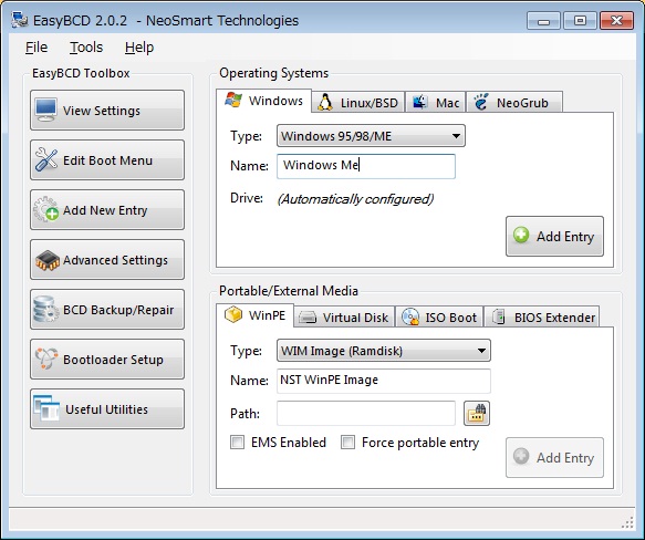 EasyBCDはWindows 98/Me/2000/XP/2003/Vista/2008/7のいずれかにインストールできます (.NET Framework 2.0が必要)。