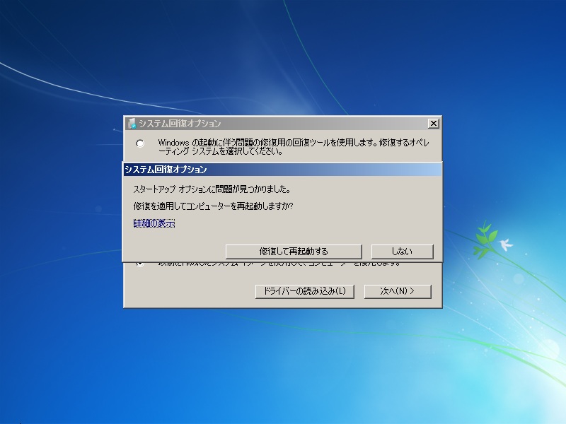 8) 再度「exit」と入力してコマンドプロンプトを閉じます。システム回復オプション画面に戻りますので「再起動」をクリックします。
