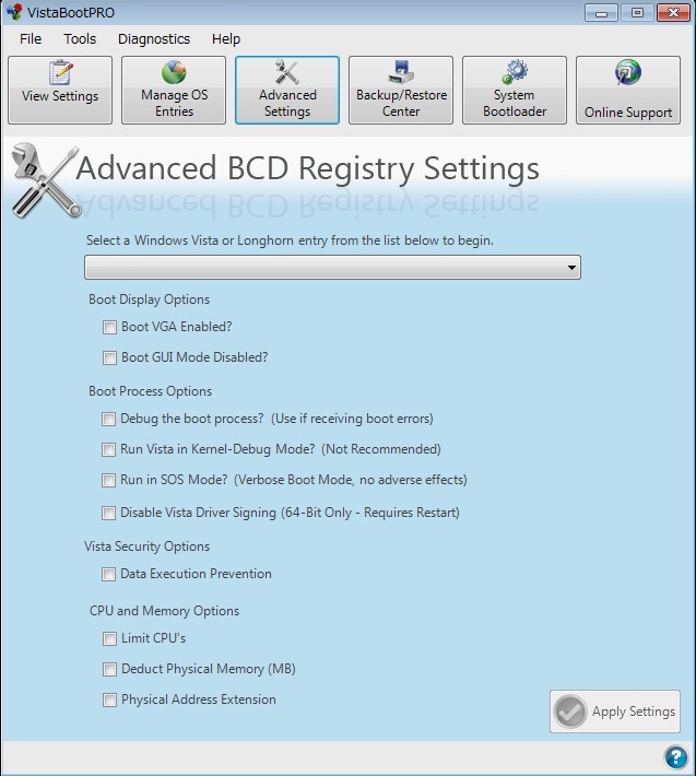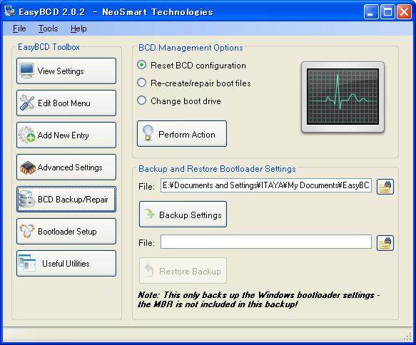・「Backup and Restore Bootloader Settings」で、BCDのバックアップおよびリストアができます。