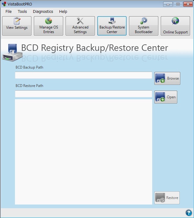 ◎「Backup/Restore Center」をクリックすると、BCDのバックアップ/リストアを行うことができます。