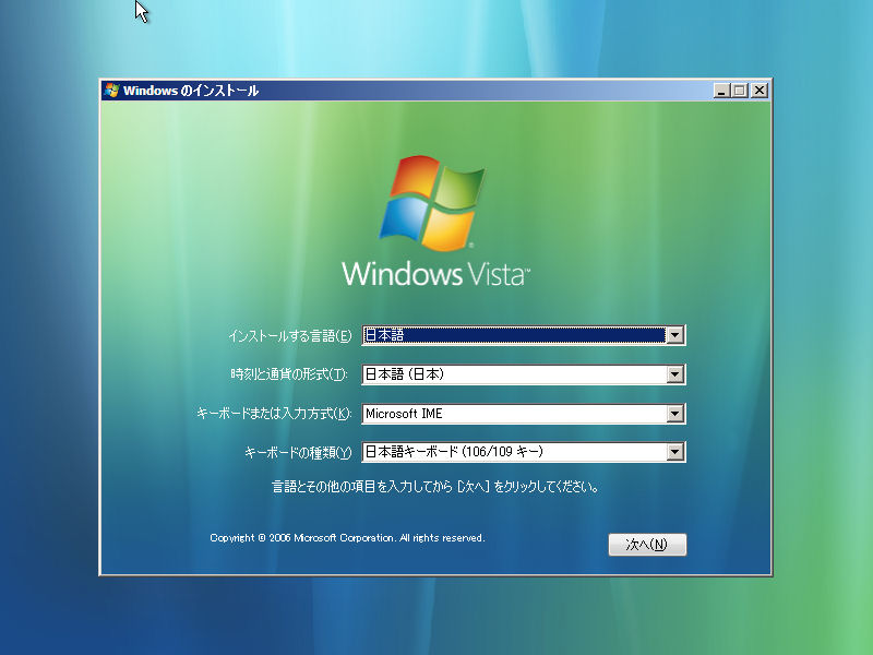 2) 以下の操作は、「すでにWindows Vista/2008/7をインストールしているPCにWindows 9xをインストールした場合」の 9) 以降と同様です。