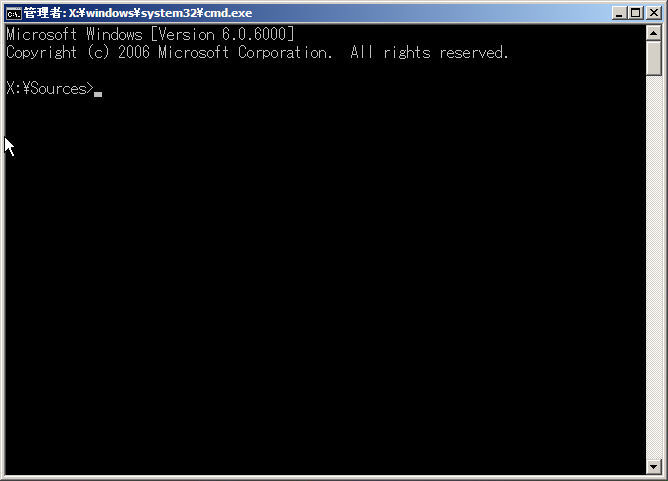 2) Windows Vista/2008/7のインストールDVDをCD/DVDドライブにセットし、次のように入力します。